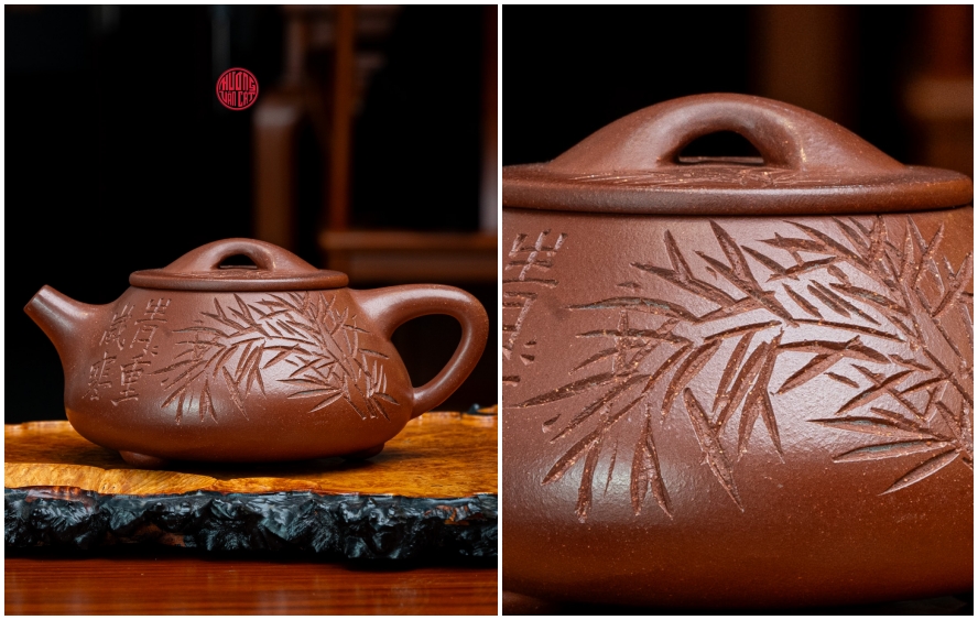 Khi bài trí ấm trên một chiếc khay trà đạo bằng gỗ lâu năm, không gian xung quanh như lắng đọng lại. Cảm giác cầm trên tay chiếc ấm chắc chắn, rót dòng nước trà vàng óng vào chén tử sa quyện cùng hương thơm dịu nhẹ sẽ giúp buổi uống trà đàm đạo trở nên thăng hoa và trọn vẹn hơn.